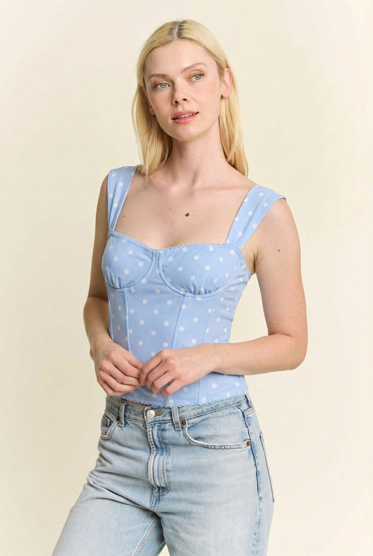 Polka Dot Mesh Print Corset Top