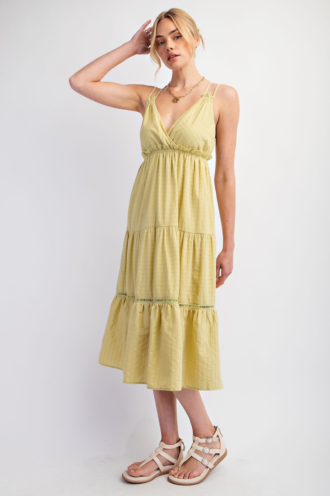 This playful tiered ruffle dress features a criss cross back and adjustable straps for a perfect fit. Its relaxed, loose silhouette keeps you comfortable and carefree all day long. Fully lined for smooth wear, itβs the ideal choice for fun, flirty days and breezy evenings.